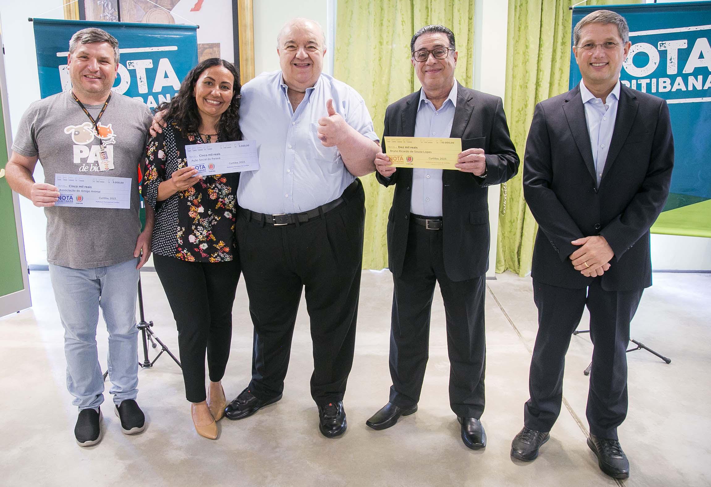 Pela primeira vez uma entidade de proteção animal recebeu um prêmio do Nota Curitibana, programa do município que dá prêmios e gera créditos para quem pede CPF na nota. Durante a entrega do 51º sorteio do programa pelo prefeito Rafael Greca, nesta quinta-feira (9/2), a Associação Amigo Animal, com sede na Cidade Industrial de Curitiba (CIC), levou para casa R$ 5 mil, depois de ter sido indicada pelo terceiro colocado. "Estamos muito felizes que as pessoas estejam apoiando a proteção animal. Já vamos divulgar que recebemos o prêmio do Nota Curitibana para que mais pessoas possam nos indicar também e quem sabem sermos agraciados novamente", disse Marcelo Misga, diretor da Amigo Animal.