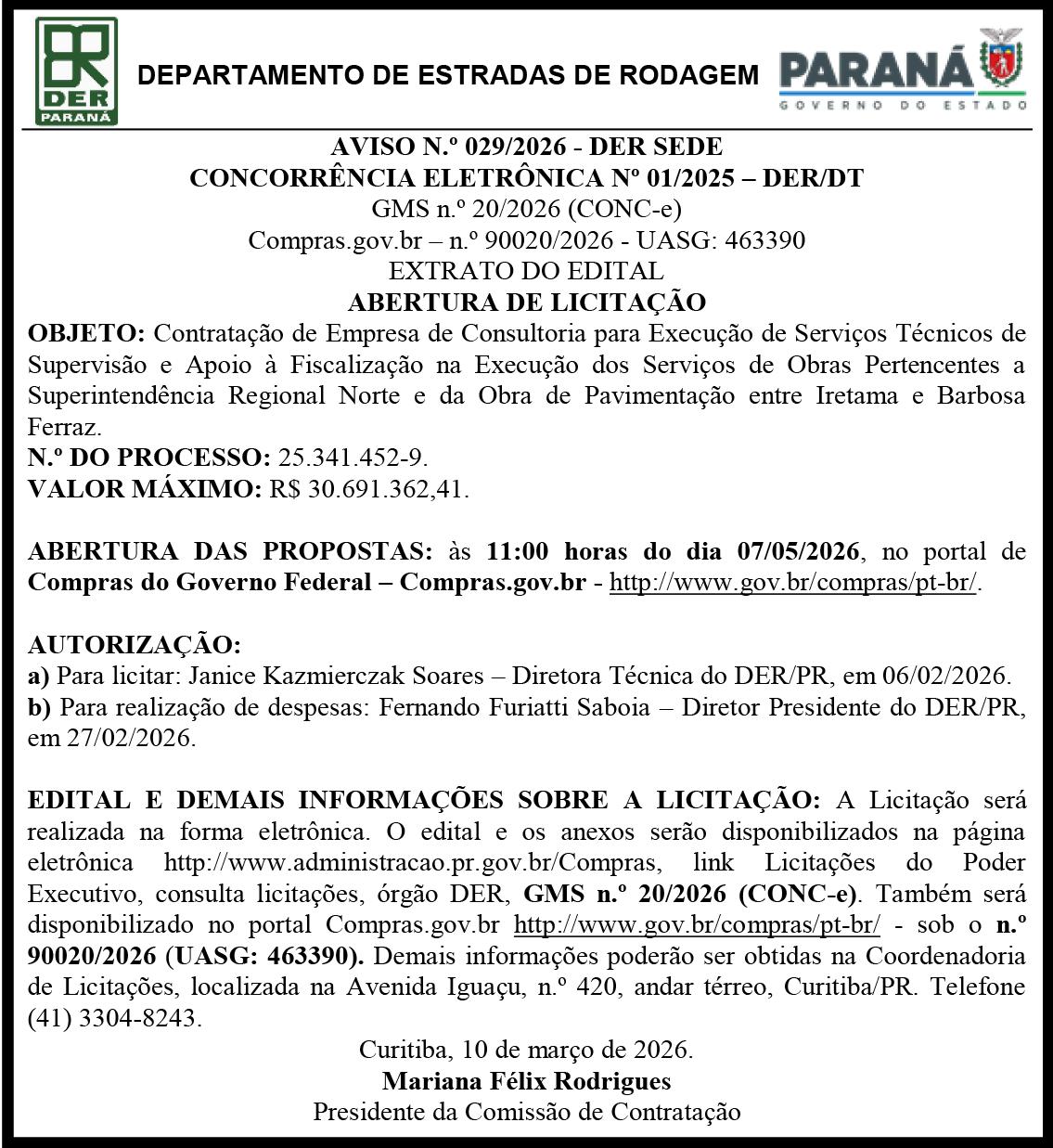 Foz do Iguaçu. Maratona da Ponte A Maratona Internacional do Paraná, conhecida como “Maratona da Ponte de Guaratuba”, já reúne cerca de 18 mil atletas confirmados e se consolida como a maior corrida do Estado em número de participantes. A expectativa da organização é chegar a 22 mil inscritos. As provas acontecem nos dias 2 e 3 de maio, com percursos entre Guaratuba e Matinhos e passagem pela nova ponte. A premiação total supera R$ 300 mil. Agenda do agro