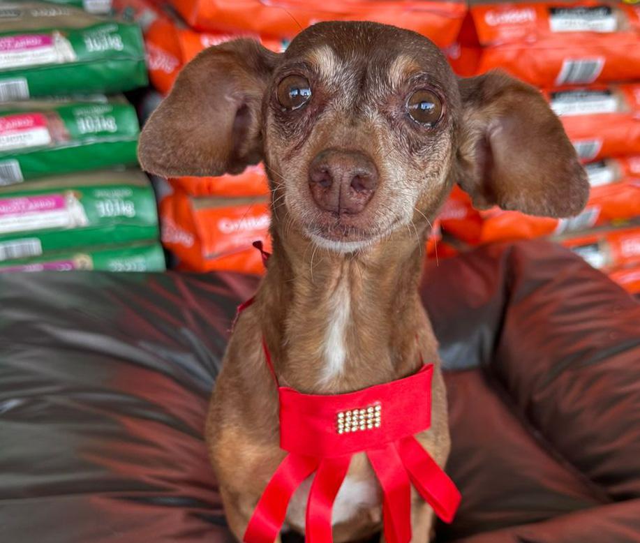 Jade tem 7 anos, é uma pinscher de porte pequeno. Super boazinha, no começo é um pouco medrosa, mas logo se solta e mostra todo seu