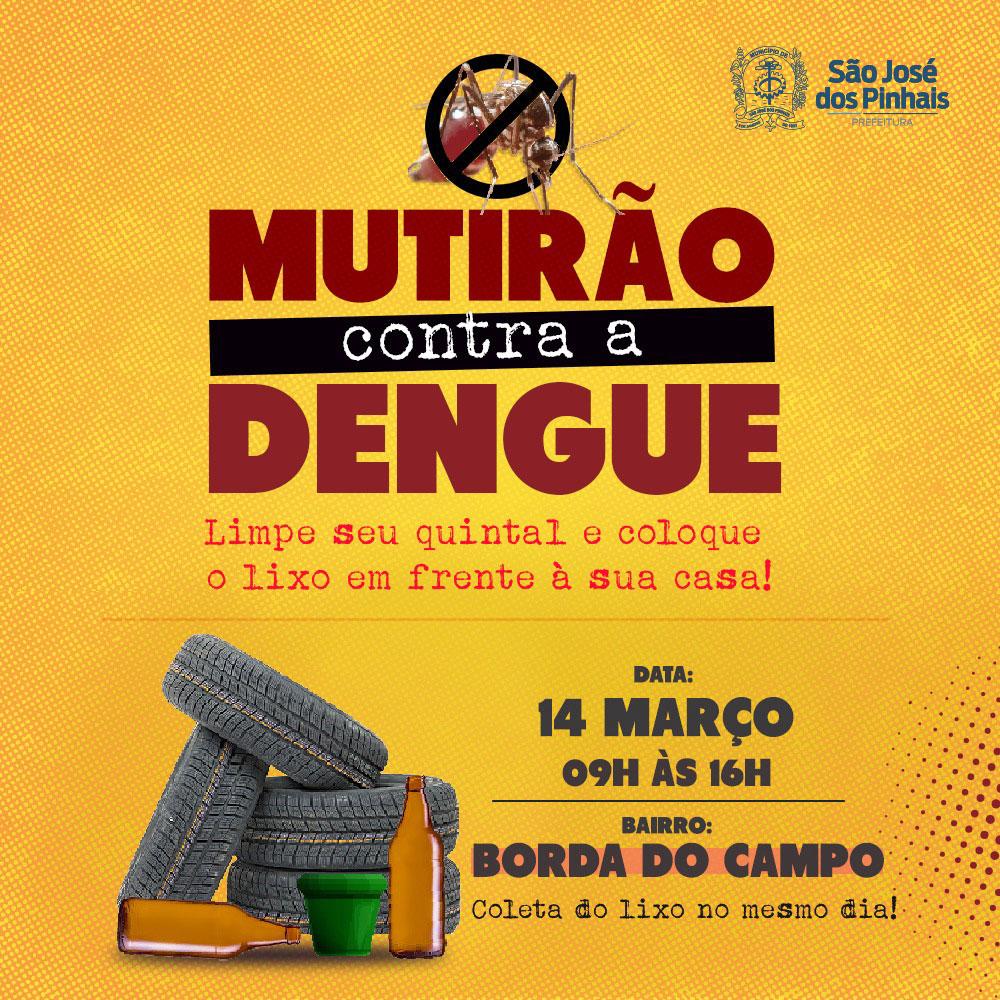 Segundo o Painel de Arboviroses de São José dos Pinhais, o município já tem 100 casos confirmados de Dengue. Sabendo da importância de combater a proliferação do Aedes aegypti, mosquito responsável pela transmissão da doença, a Secretaria Municipal de Saúde (Sems) realizará nesta quinta-feira (14) mais um Mutirão de Combate à Dengue. A ação será das 9h às 16h na região do Borda do Campo.