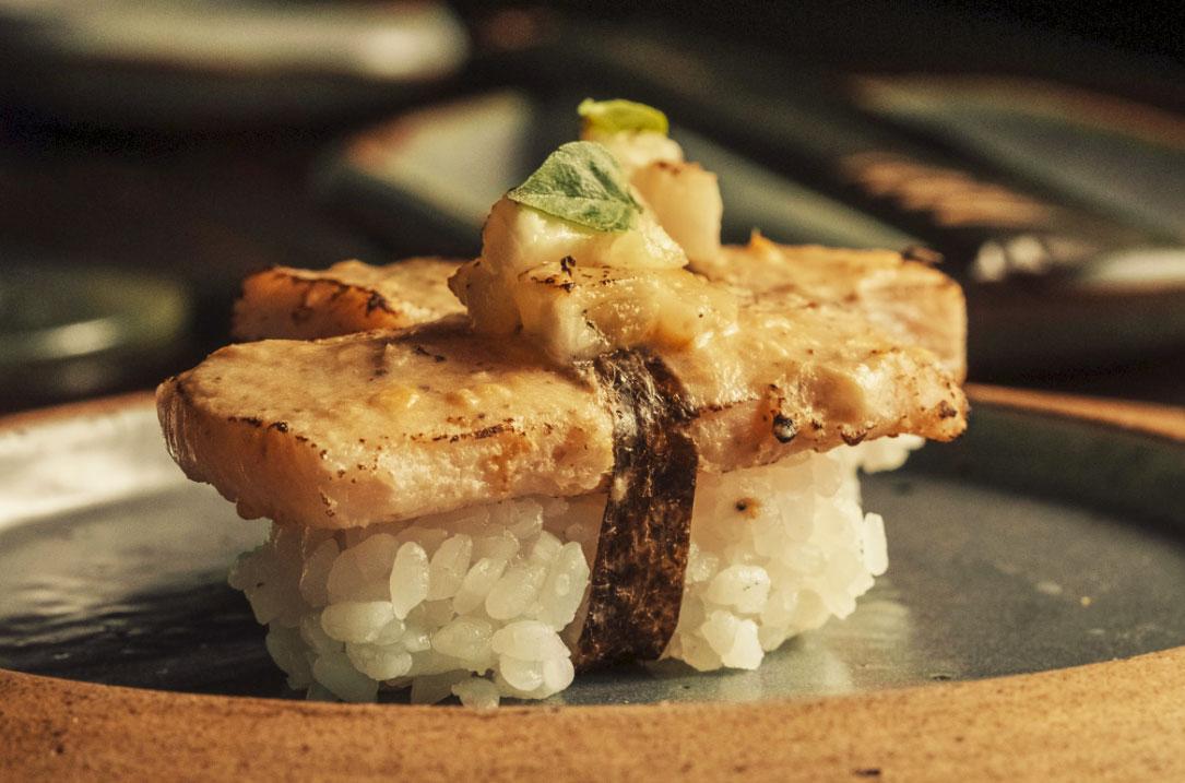 te picante, para então ser delicadamente finalizado com fatias de abacaxi grelhado. A combinação inusitada de sabores é servida sobre um bolinho de arroz japonês, criando uma fusão perfeita entre as tradições orientais e a riqueza amazônica.