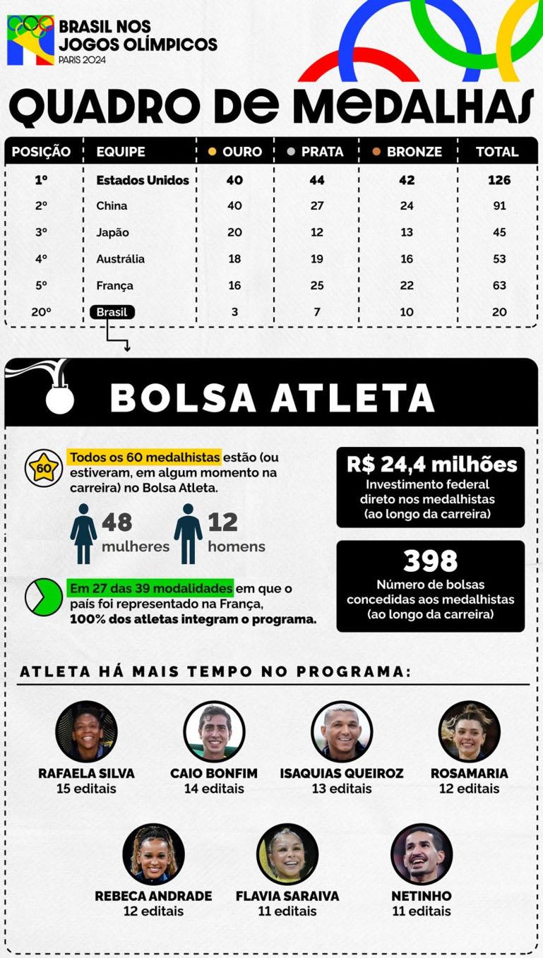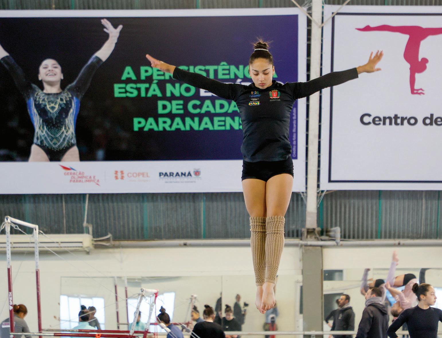 Bronze por equipes na ginástica artística feminina na Olimpíada de Paris, a ginasta curitibana Julia Soares retomou nesta segunda-feira (12) sua rotina de treinos no Centro de Excelência de Ginástica do Paraná (Cegin), que funciona em uma estrutura que pertence à Secretaria de Estado do Esporte. A atleta, bolsista há oito anos do programa Geração Olímpica e Paralímpica (GOP), do Governo do Estado, foi recepcionada pelo secretário da pasta, Helio Wirbiski. “É um sentimento incrível voltar da minha primeira Olimpíada com uma medalha no peito, entrar na história com as meninas, com toda a equipe brasileira. É um sentimento muito bom, poder voltar para o meu clube e para minhas técnicas”, disse Julia. “Eu acho que isso não tem preço, voltar com uma medalha no peito e mostrar que a gente está no caminho certo, que todo trabalho realmente valeu a pena”.