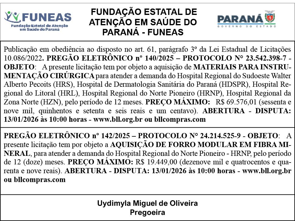 A Assembleia realizará, amanhã, terça-feira, 16 de dezembro de 2025, às 19h, no Plenário, uma sessão solene dedicada a homenagear o movimento Legendários pelo pioneirismo e chegada do Legendários no Brasil e Paraná.