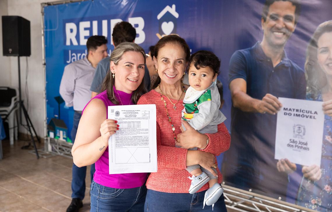 Uma entrega oficial de matrículas de mais de 80 imóveis regularizados foram entregues pela Prefeitura de São José dos Pinhais no último sábado (13). A regularização desses imóveis, localizados no novo Jardim das Araucárias, no bairro Contenda, foi feita pela Secretaria de Urbanismo, Transportes e Trânsito (Semutt) por meio do processo de Regularização Fundiária Urbana (REURB).