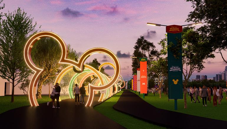 O Natal da Disney em Curitiba também terá duas experiências gratuitas. Uma delas é o Parque Mágico com ativações lúdicas, ambientações temáticas e espaços fotografáveis espalhados pelo Parque Barigui.