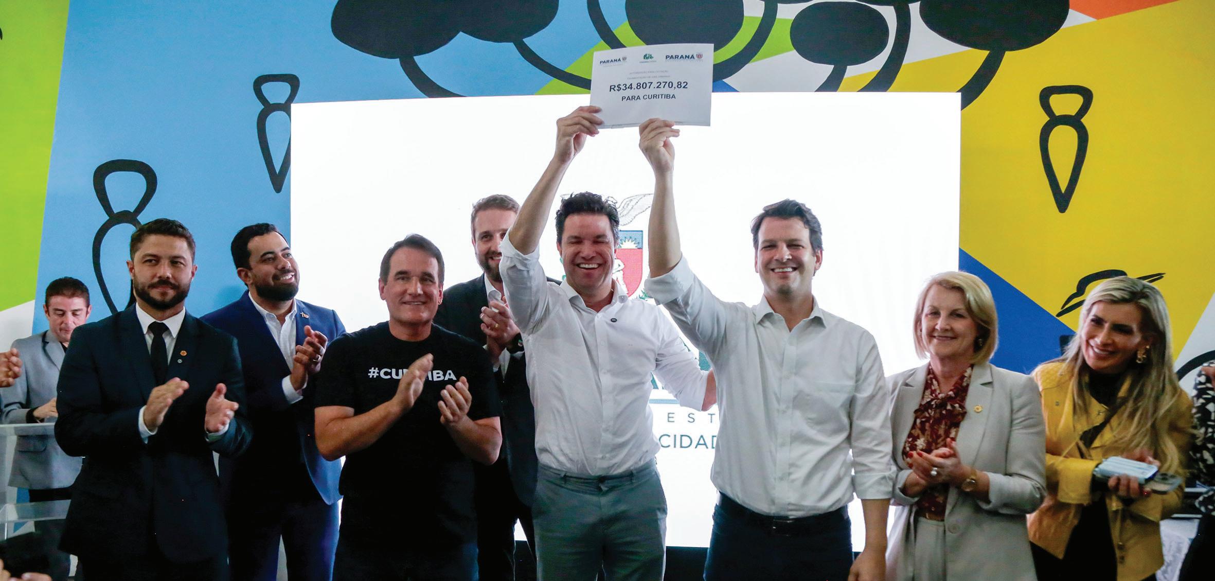 aos 399 prefeitos, demonstrando a força de trabalho de todo o nosso time e a confiança do governador Carlos Massa Ratinho Junior", disse. O prefeito de Curitiba, Eduardo Pimentel, ressaltou que o Governo do Estado, através da Secretaria das Cidades, tem ajudado muitos municípi-