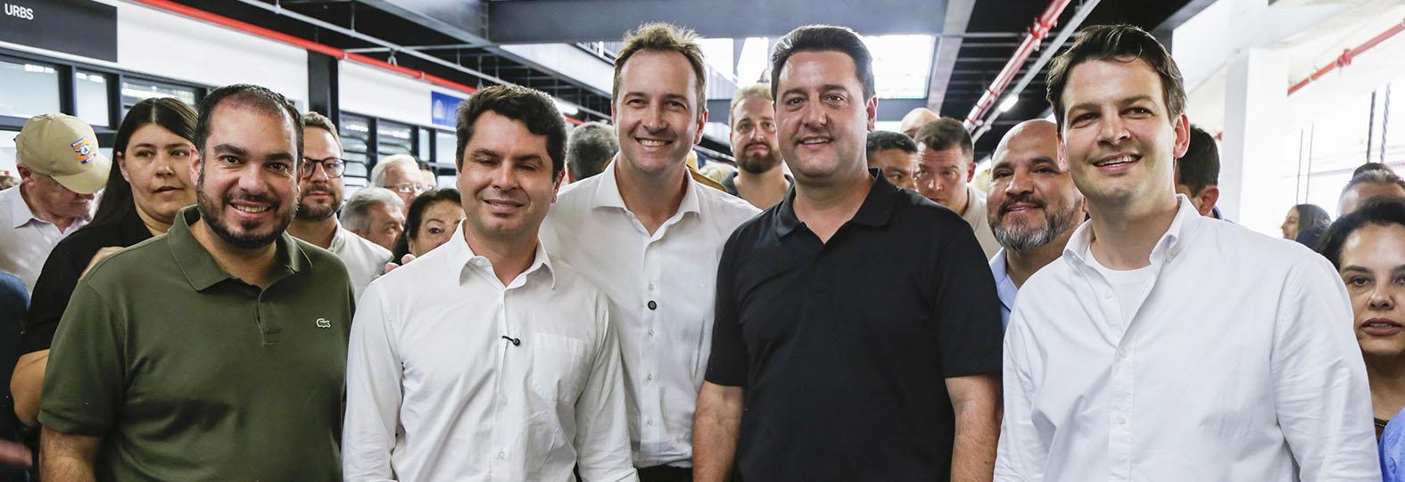 Prefeito Eduardo Pimentel com o governador Carlos Massa Ratinho Junior, o presidente da Assembleia Legislativa, Alexandre Curi, e demais autoridades, inaugura a nova Rua da Cidadania da CIC
