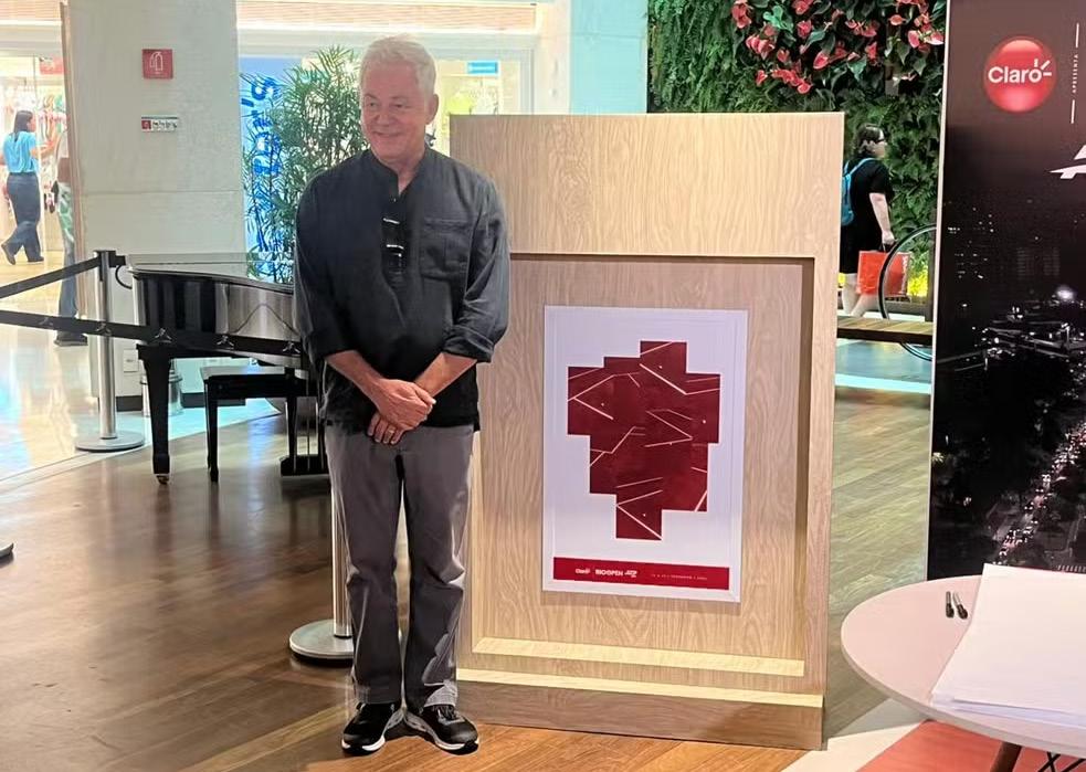 Artista Marcos Chaves apresenta cartaz do Rio Open 2026 — Foto: Lucas Espogeiro