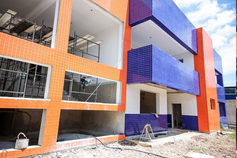 No térreo ficarão as salas da secretaria, da diretoria, dos pedagogos, dos professores, banheiros, plataforma elevatória, duas salas de aula, espaços lúdicos, refeitório, pátio interno, entre outros espaços. O piso superior terá oito salas de aula, oito espaços lúdicos, lactário, sanitários, sala de recursos multifuncionais e almoxarifado. Ambos os pavimentos contarão com banheiros masculino, feminino e infantil (adaptados para pessoas com deficiências).