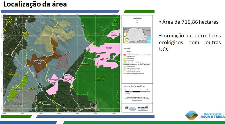 de 708,4 hectares pertencente ao Estado e vizinho á Unidade de Conservação (UC) será incorporado ao local para a aprimorar a preservação ambiental na região. Agora, o espaço, que já possuía 2.698,68 hectares de território, passa a ter uma nova área de 3.407,09 hectares, o que corresponde a mais de 4.700 campos de futebol de áreas verdes. A gestão do espaço é feita pelo Instituto Água e Terra (IAT), autarquia vinculada à Secretaria de Estado do Desenvolvimento Sustentável (Sedest).