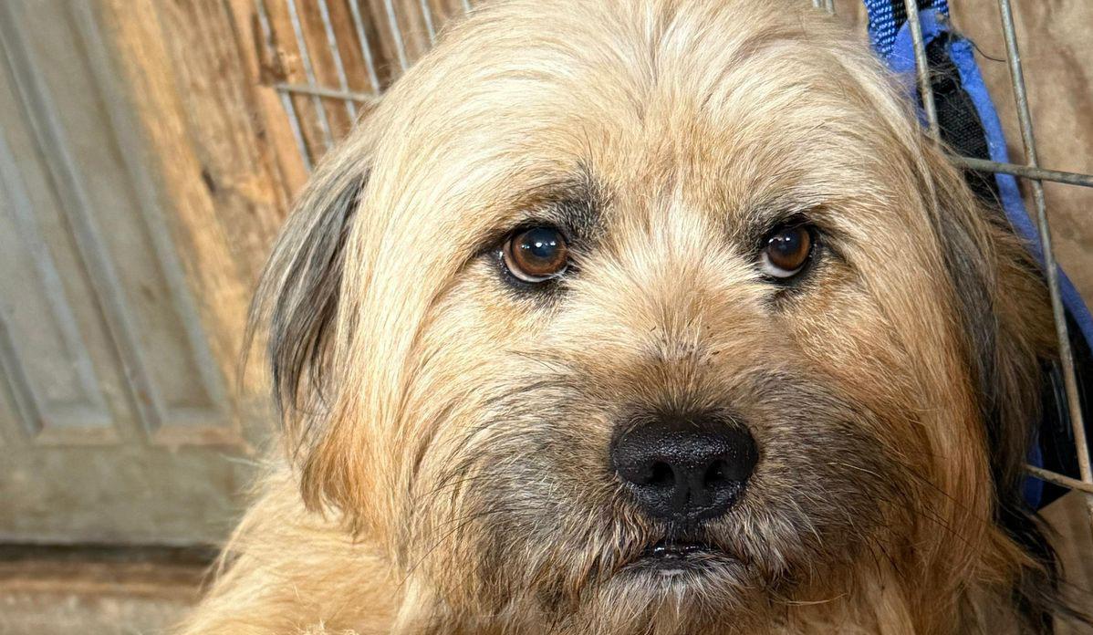 Leon, 5 anos, porte pequeno/médio, chegou ao abrigo há seis meses debilitado e com fome. É amoroso e comportado, mas precisa de casas com muros altos ou apartamentos telados, pois é fujão.