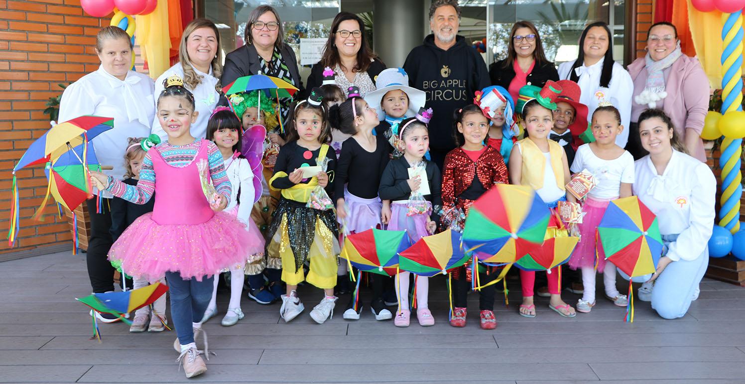 Na ocasião, ele também foi recepcionado pelos alunos do Cmei Raimunda Boeng Gorges que estavam fantasiados de personagens do circo