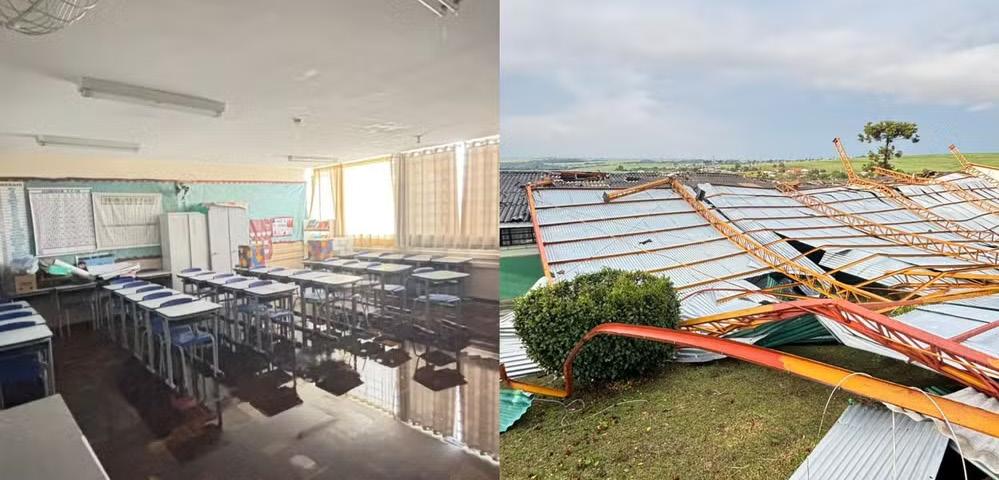 Um violento temporal atingiu o Paraná entre domingo (21) e a madrugada de segunda-feira (22), trazendo chuva forte, rajadas de vento acima de 120 km/h e inúmeros estragos em diversas cidades do estado. O fenômeno deixou milhares de pessoas afetadas, provocou destelhamentos, quedas de árvores, interrupções no fornecimento de energia e danos em prédios pú -