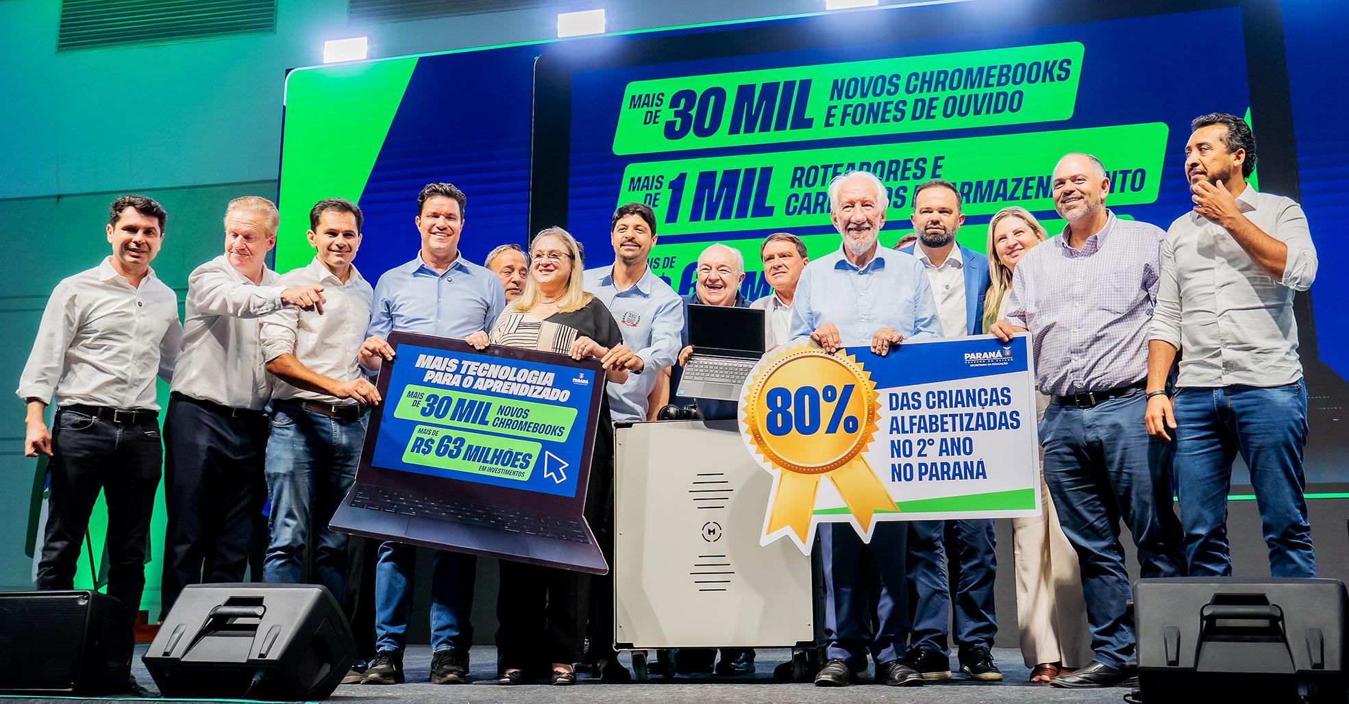 raná e, com essa entrega, a gente avança com tecnologia também para a rede municipal. O Paraná hoje é o Estado que tem o maior número de computadores por aluno na rede estadual, um computador para três alunos, e a gente quer apoiar também as redes municipais", disse.