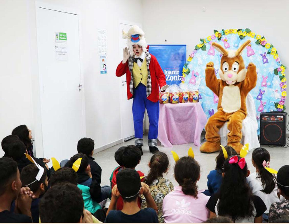 A Prefeitura de Pinhais, por meio da Secretaria Municipal de Assistência Social (Semas), promoveu na segunda-feira (25) um dia especial às crianças atendidas pelo Serviço de Convivência e Fortalecimento de Vínculos. Em parceria com o Condor, por meio do Instituto Joanir Zonta, aproximadamente 100 crianças participaram da comemoração à Páscoa, no Espaço de Cidadania e Convivência (ECC), no bairro Alto Tarumã.