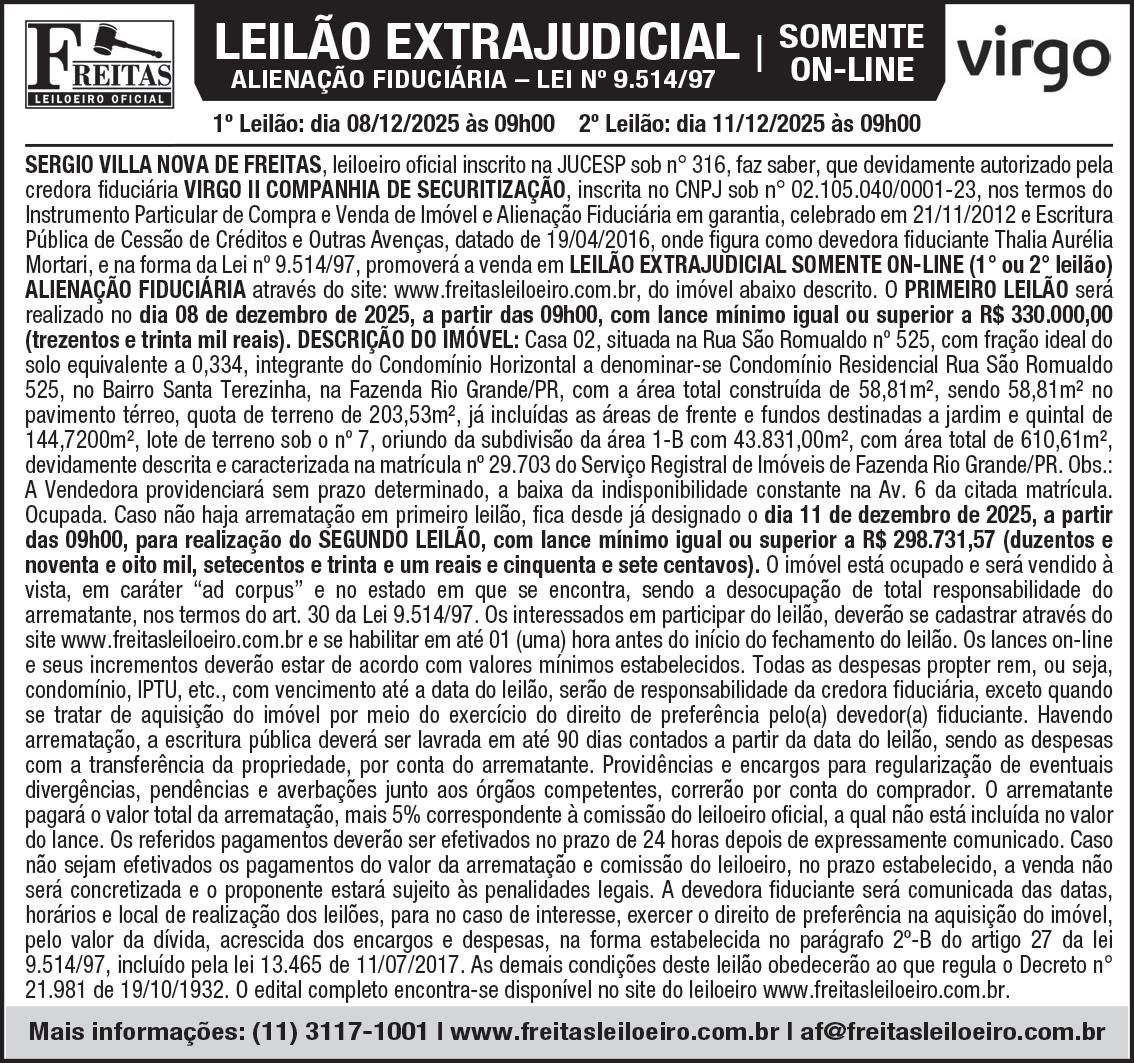 EDITAL - PRAZO DE 30 (TRINTA) DIAS Para ciência de terceiros e interessados sobre a mudança do regime de casamento de Ana Paula Hesketh Rabuske Hoffmann e André Hoffmann. O Doutor Lauro Augusto Fabrício de Melo Filho, MM. Juiz de Direito da 1ª Vara de Família do Foro Central da Comarca da Região Metropolitana de Curitiba – Estado do Paraná, na Forma da Lei, faz saber a todos quantos vierem ou conhecimento tiverem do presente EDITAL que tramitam neste Juízo e Secretaria respectiva da 1ª Vara de Família, autos sob nº 0003870-79.2025.8.16.0188 - PROJUDI, de Alteração de Regime de Bens Instituído em Casamento em que são Requerentes Ana Paula Hesketh Rabuske Hoffmann e André Hoffmann, publicam sua intenção de alterar o regime de bens do atual comunhão parcial de bens para o da separação convencional. Despacho: Autos nº 3870-79.2025.8.16.0188. 1. Ana Paula Hesketh Rabuske Hoffmann e André Hoffmann pretendem alterar o regime de bens de seu casamento, da comunhão parcial de bens para o da separação convencional. 2. Com fundamento no art. 734 do CPC e art. 406 do Código de Normas, intimem-se os Requerentes para, no prazo de trinta dias: (a) assinarem a petição inicial; (b) exibirem certidões negativas de débito tributário nas esferas Municipal e Estadual; e (c) providenciarem a publicação decidade à mudança e resguardar direitos de terceiros. 3. Feito isso, abra-se vista ao Ministério Público. 4. Int. Curitiba, 28 de maio de 2025. Lauro Augusto Fabrício de Melo Filho Juiz de Direito. E para que ninguém possa alegar ignorância, se passou o presente edital, que por cópia devidamente assinada será juntado aos autos e publicado no Diário Eletrônico da Justiça e na imprensa desta Capital. Dado e passado nesta cidade e comarca de Curitiba, Capital do Estado do Paraná. Em 21 de agosto de 2025. Eu, Helise Caroline Dietrich, Técnica Judiciária, o digitei e subscrevi. Simone Carla Zardo Chefe de Secretaria Assinatura Autorizada - Portaria 04/2025.