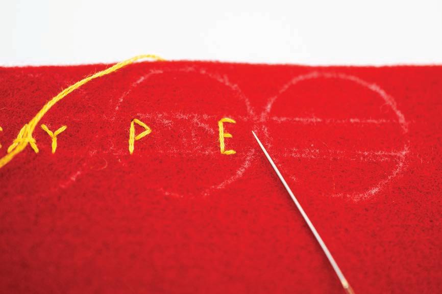 To embroider the “stick” typeface, use two strands of embroidery floss.