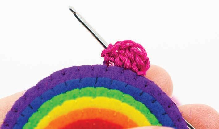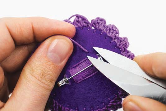 Alternatively, you can use sewing thread of each colour + embroidery floss to attach pinback and crochet the edge (if this option is chosen).