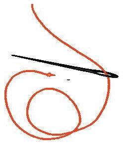 Stitch over the edge by “wrapping” your thread around the fabric layers. The needle moves from the back to the front.