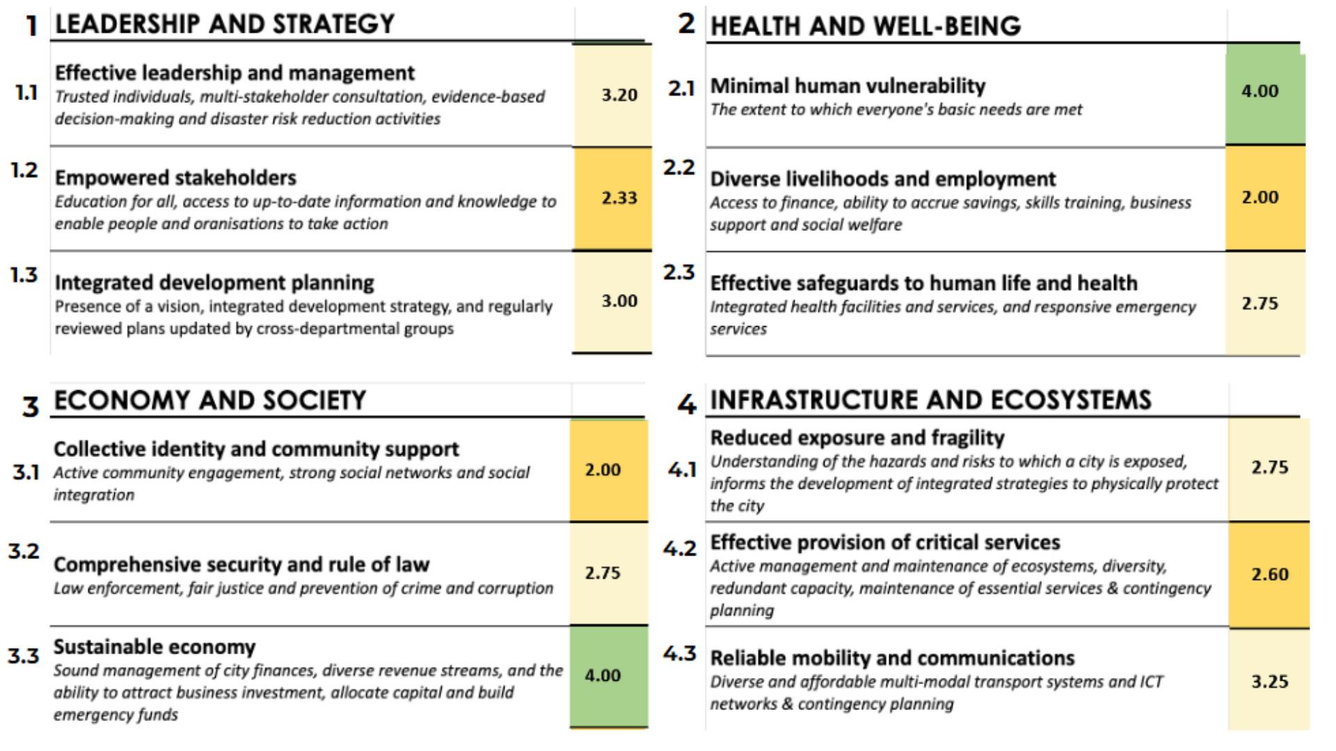 This dimensions were considered because we are aligning this document to the Rockefeller Foundation City Resilience Index.