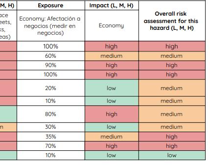It also presents a risk map with the hazards and vulnerabilities the study zone faces, complementary to this, an evaluation of the zone’s resilience, with the methodology of Rapid Resilience Index, by ARUP.