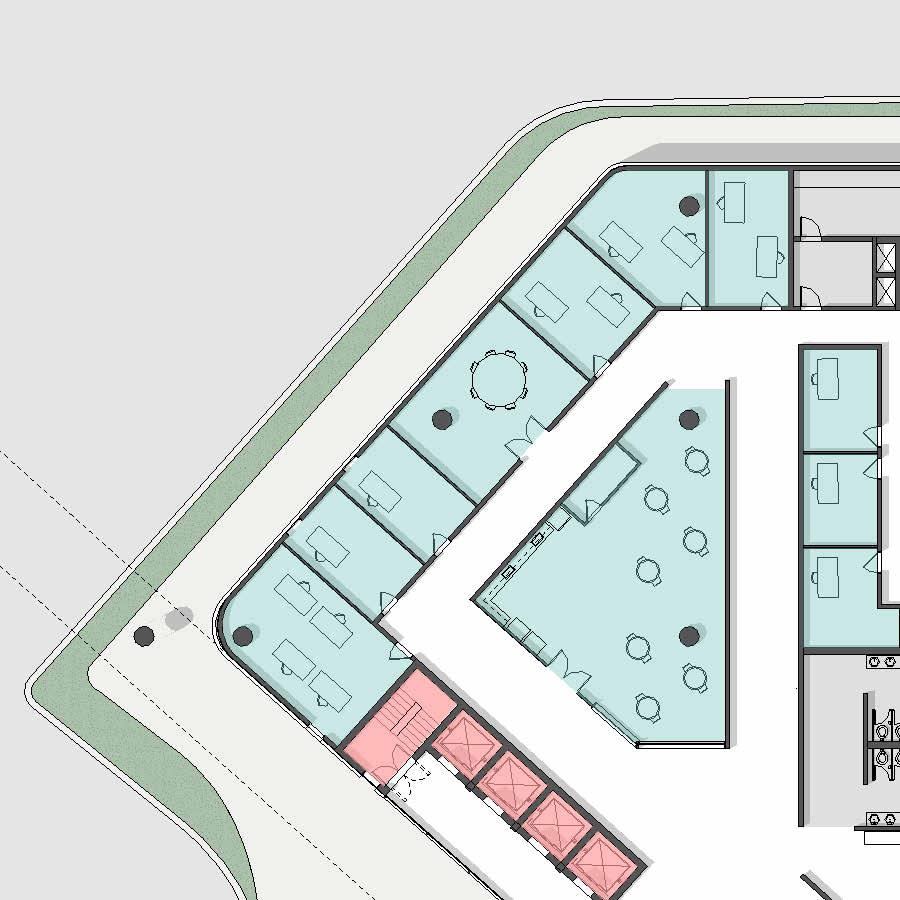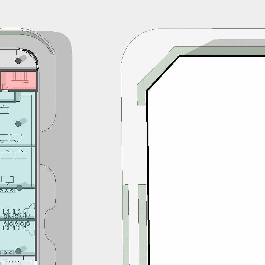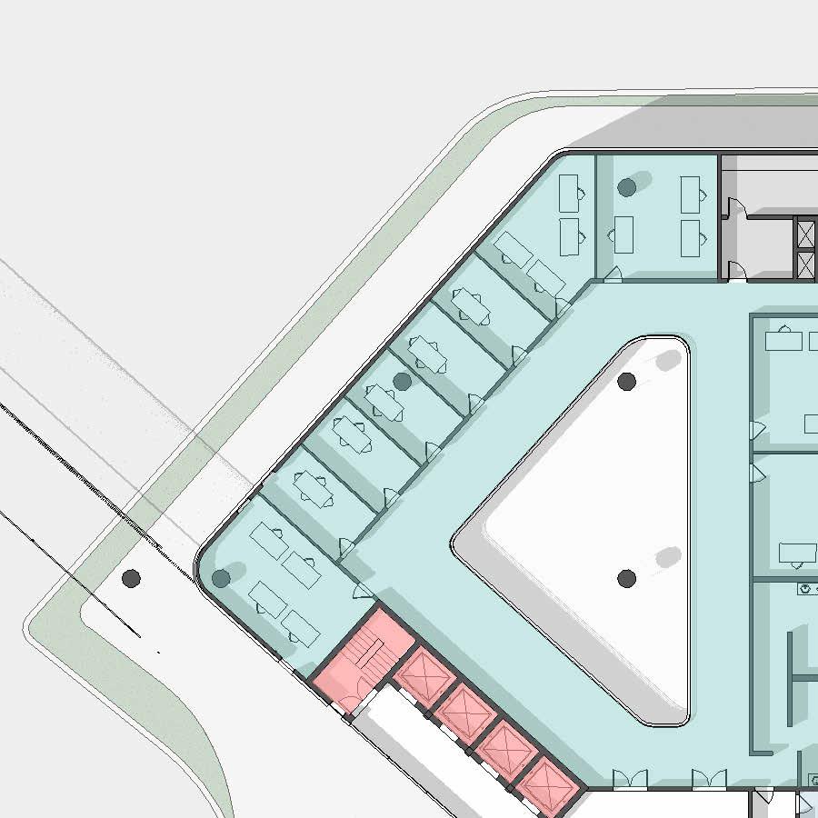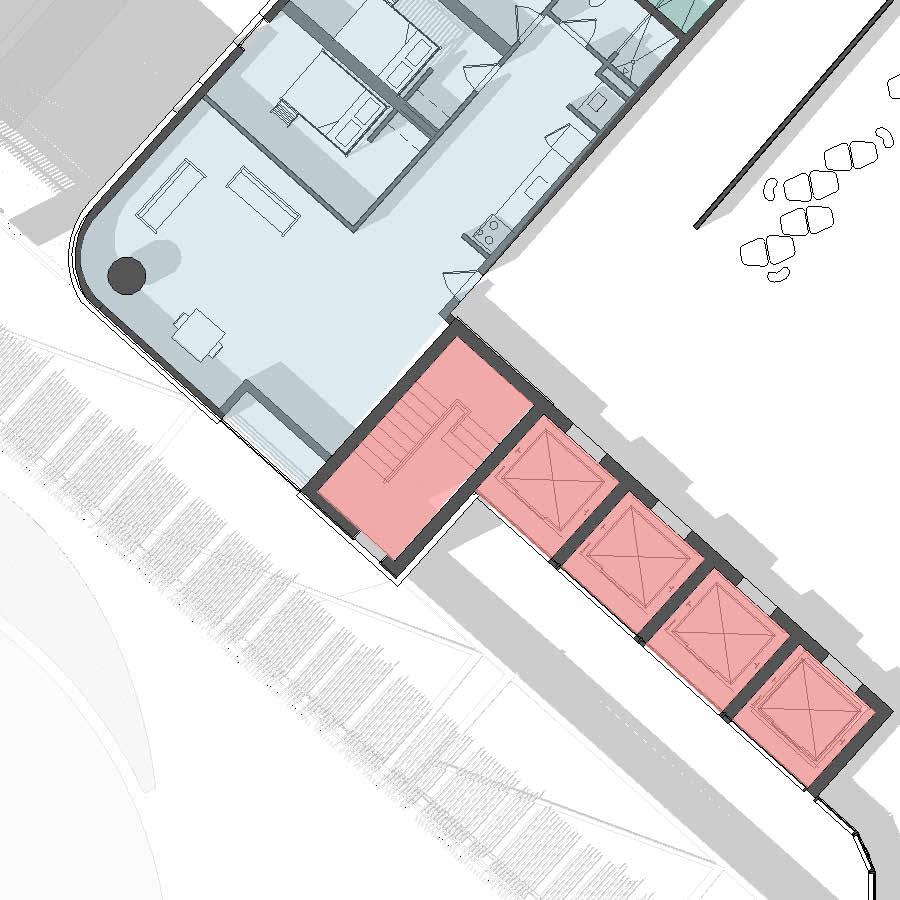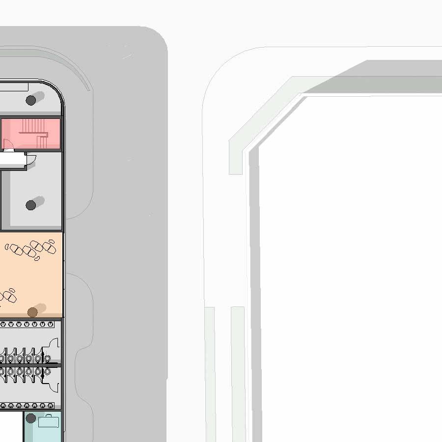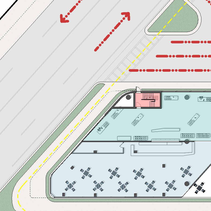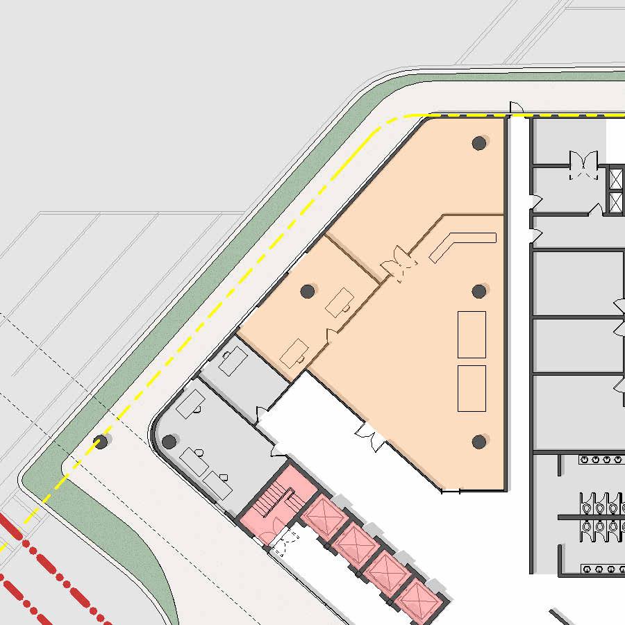 The plaza will include a variety of program open to both the public and studentsincluding a bookstore and café, public art gallery, 8,000 sq-ft. fitness center, and brandnew student housing, accomodating over 320 students.