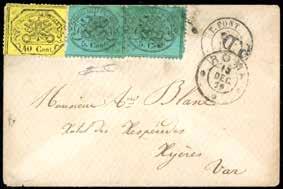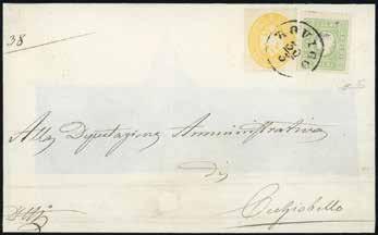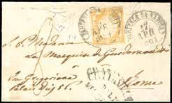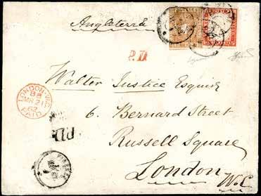 The only recorded letter from Victoria to Lombardy Venetia that carries Victorian postage stamps. Cert. R.P.S. (ex coll.Mentaschi).