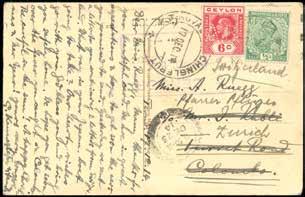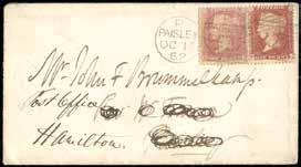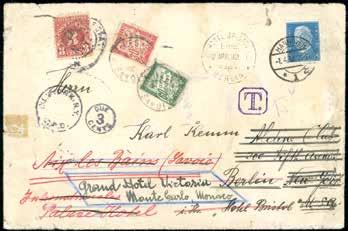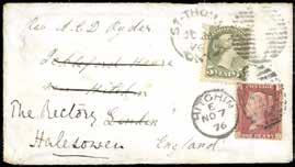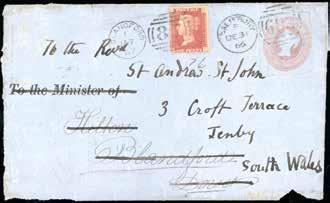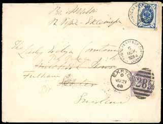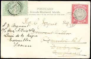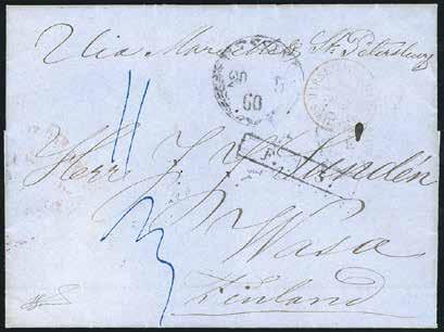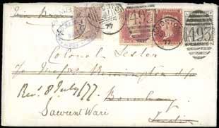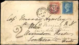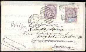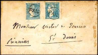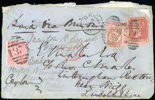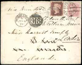 In London the red boxed handstamp “COLONIES/ART-18” was struck, referring to the article of the Anglo-French Convention debiting France 3 s 4 d for each 30 grams of letters carried to France.