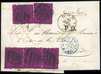 FRANCIA UFFICIO POSTALE ALESSANDRIA D’EGITTO 1848/1902 - Ben avviata collezione del settore comprendente dieci lettere affrancate e tre do cumenti del periodo. Notate diverse rare affrancature pluricolori, di ottimo aspetto. Merita esame, ottimo anche per dettaglio.