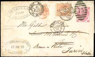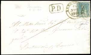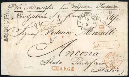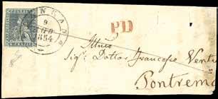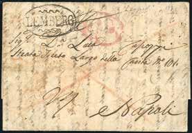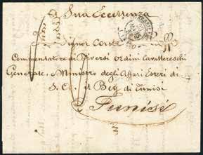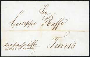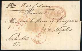 The cover bears the British “PD” and the hardly legible oval “E/Franca” struck in Naples, which confrmed the prepayment of postage to destination. (ex. coll. Mentaschi).