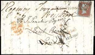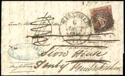The letter was carried by the clipper Joseph Tarrat of the Black Ball line from Port Philip, via Cape Horn, to England.