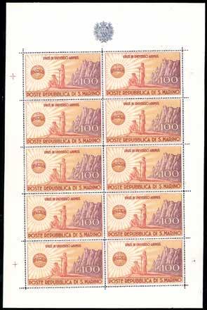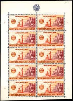 NAZIONI UNITE ONU NEW YORK 1955 - 10° anniversario Nazioni Unite, dieci foglietti (BF1), gomma integra, perfetti. Belli. 100