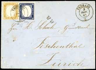 SVIZZERA 1854/1862 - Collezione di francobolli e lettere del periodo, dell’e missione Strubel, su fogli d’album artigianali. Da studiare con attenzione, con pregevoli e non comuni presenze.