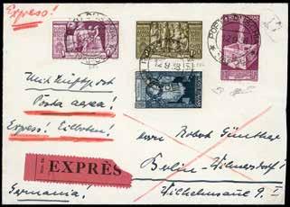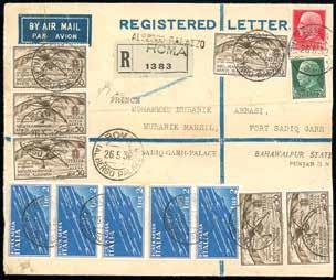 STATI UNITI POSTA AEREA 1923/1960 - Avanzata collezione del periodo composta da 155 aerogrammi del periodo, montata su 115 fogli da esposizio ne. Notate emissioni Zeppelin su tre buste e un aerogramma del volo interotto POND-SABELLI e numerose altre buone presenze. Alto valore di catalogo. Si sicuro interesse, merita esame.