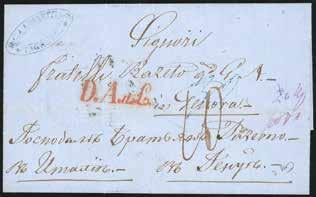 Since the letter exceeded 15 grams of weight, the French debit amounted to 51 decimes (3x17 decimes), corresponding to 6 Astrian lire.