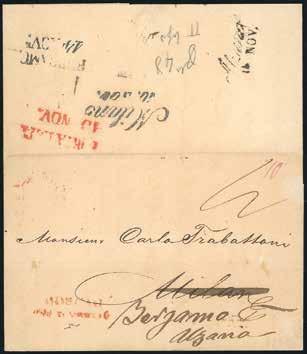 LOMBARDO VENETO-RUSSIA/IMPERO RUSSO 1848 Lettera preflatelica da Mosca a Milano 10/11/1848, rispedita ad Alzano, tassata 12 carantani. Rara. Chiavarello. Ex coll. Imperato.