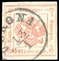 AUSTRIA 1850 - 1 kr., sette esemplari, 2 kr., quattro esemplari (1,2), usati, tutti di ottima qualità e con cert. Manzoni. 175