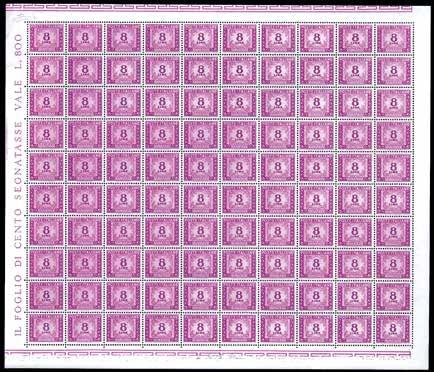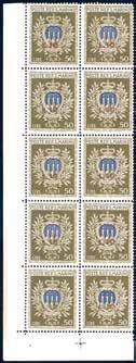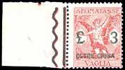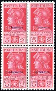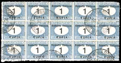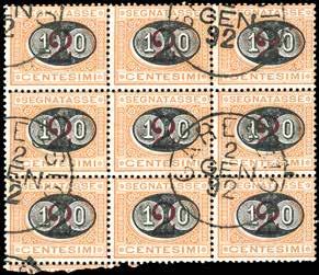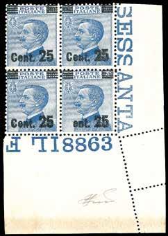 2593 ** MONTENEGRO OCCUPAZIONE ITALIANA SEGNATASSE 1941 - 5 d. soprastampato, soprastampa spostata a sinistra, varietà non catalogata (4), blocco di 24 esemplari, gomma originale integra, perfetto. Cat. Sassone € 10.000, per i francobolli normali.