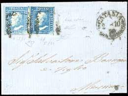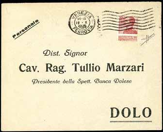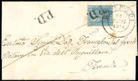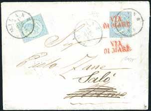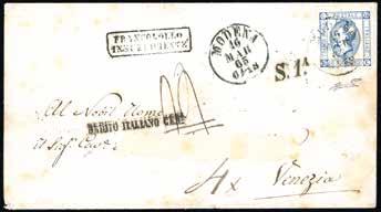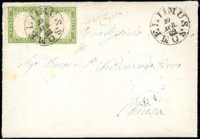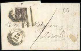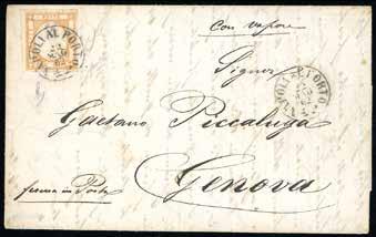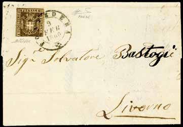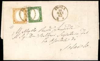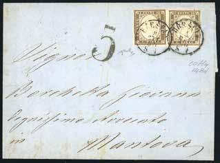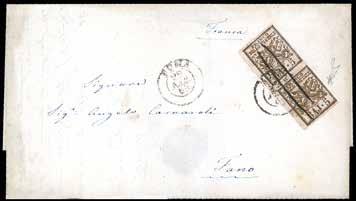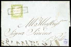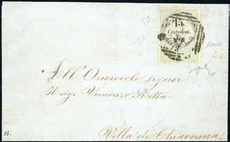 5 * 1850 - 10 cent. nero, carta a mano (2), perfetto, isolato su lettera da Venezia 18/7 per città. Sorani.