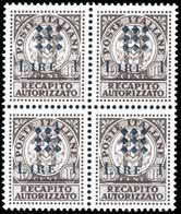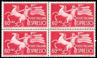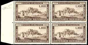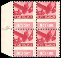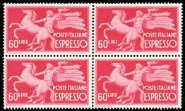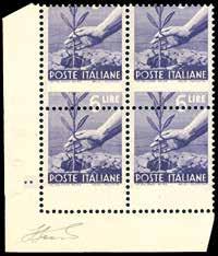 2578 ** REPUBBLICA ITALIANA 1945/1970 - Classificatore di centinaia di francobolli nuovi del periodo in blocchi di quattro, anche molto ripetuti, con presenze di un certo pregio. Ottima qualità, buon valore di catalogo.