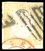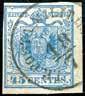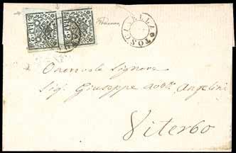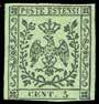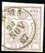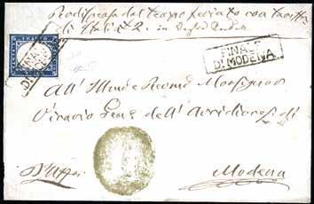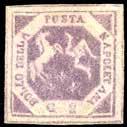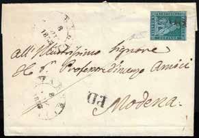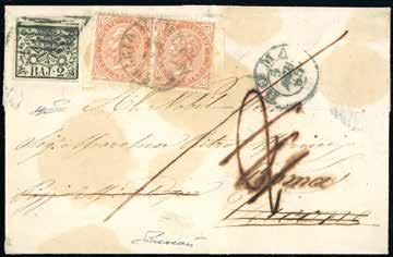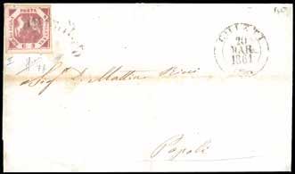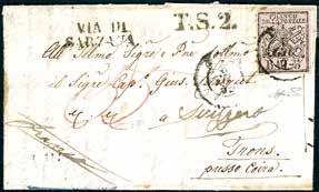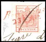 9 1850 - 10 cent. nero, ritocco, dicitura “CENTES” rifatta (2k), usato nei Territori Austriaci, perfetto. Rarissimo questo ritocco usato fuori dal Lombardo Veneto. A.Diena, Ferrario, cert. Sorani.