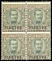 2585 **/*/ AREA ITALIANA 1901/1945 - Piccolo ma interessante insieme di francobolli di Colonie, Uffici all’Estero e Occupazioni, prevalentemente nuovi, in cartonici. Notate diverse presenze di pregio, alto valore di catalogo. Ottimo per dettaglio.