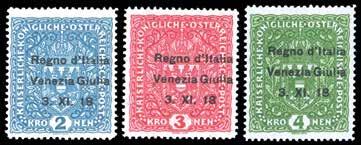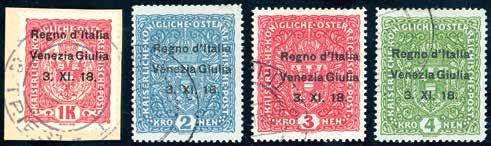 2594 * OCCUPAZIONE AUSTRIACA FRIULI-VENETO 1918 - Piccolo ma interessante insieme di francobolli del periodo con interessanti varietà di soprastampa, ottima qualità, insieme di difficile reperibilità.
