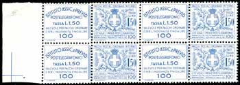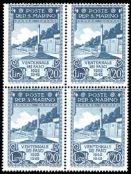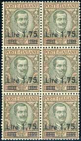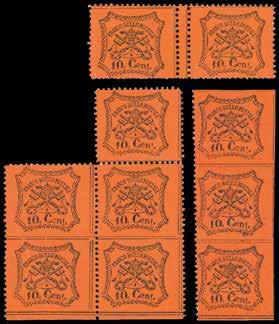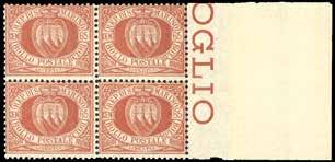 2613 SAN MARINO 1892/1994 - 5 cent. Su 10 cent., un blocco di quattro e uno di sei, 10 cent. su 20 cent., blocco di otto, 15 cent., blocco di quattro (8,11,15), tutti usati, qualche ossidazione. Pregevole insieme.