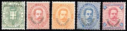 2603 **/*/(*) UFFICI ITALIANI ALL’ESTERO LEVANTE EMISSIONI GENERALI 1874/1883 - L’emissione dei 17 valori soprastampati “Estero”, escluso il n. 11, nuovi, con ripetizioni. Da esaminare. Alto valore di catalogo.