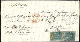 2 * INCOMING MAIL GRAN BRETAGNA 1857 - Busta non affrancata dalla Gran Bretagna 3/11/1857 a Padova, rispedita a Bassano e poi ancora a Padova, numerosi segni di tassa sul fronte. Interessante e non comune doppia rispedizione proveniente dall’estero.