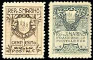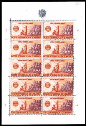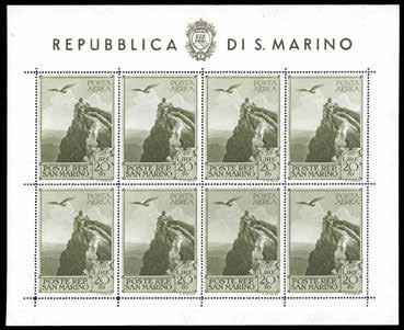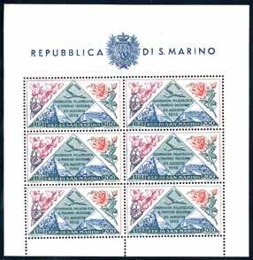 **/* SAN MARINO 1877/1965 - Avanzatissima collezione di francobolli nuovi del periodo in fogli d’album Marini. Francobolli generalmente di ottima qualità, linguellati fino al 1900, in seguito gomma integra. Notate diverse ottime presenze, tra cui il n. 6, la serie Palazzetto, Garibaldi del 1932, Vedute, 1.000 lire Bandiera, Zeppelin, foglietti Sciatrice e 1.000 lire Aereo. Alto valore di catalogo! Di sicuro interesse.