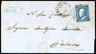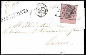 13 * 1851 - 15 cent. rosa, II tipo, carta a mano (5), perfetto, su lettera da Portoguaro 14/7/1851 a Venezia. Si tratta di uno dei primi giorni d’uso di questo francobollo. Per specialista. Cert. Diena (nel 1966 era reputata la prima data nota di questo francobollo).