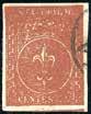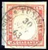 10 * 1850 - 15 cent. rosso, I tipo, carta a mano, varietà “5” di “15” simile ad un “3” (3a/3o), gomma originale, perfetto. UNICO ESEMPLARE NUOVO NOTO della I tiratura con questa varietà di clichè, finora inedito. Rarità del settore. Cert. Oro Raybaudi.