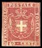 11 * 1850 - 15 cent. rosso vermiglio inteso (3g), nuovo, gomma originale, leggera traccia di linguella, perfetto. Molto fresco e ben marginato. Cert. Ferrario e G.Colla.